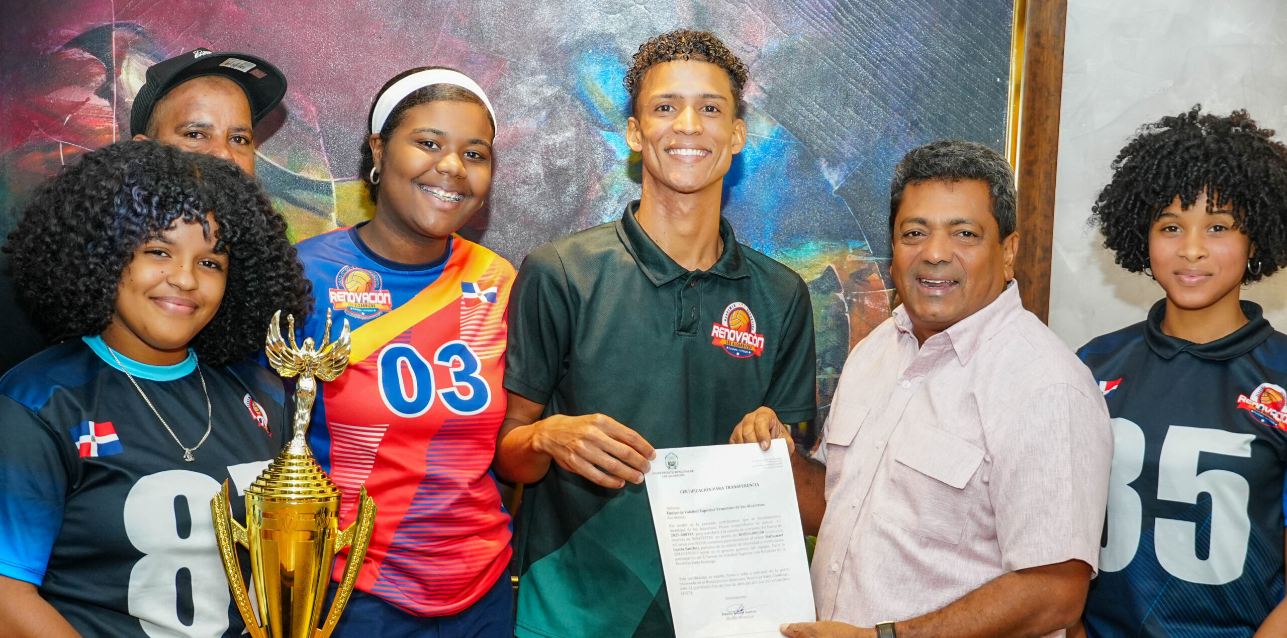 Durante un acto celebrado en la sede del Ayuntamiento, el alcalde entregó un cheque por valor de RD$50,000 al equipo que participará en el torneo superior de voleibol, como muestra del respaldo institucional a su desempeño.