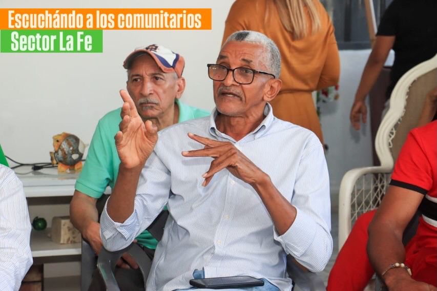 El alcalde del municipio de Los Alcarrizos, Junior Santos, sostuvo un encuentro con comunitarios del sector La Fe, donde escuchó de primera mano las principales necesidades de la comunidad, entre ellas la falta de aceras, contenes, badenes, así como el relleno y asfaltado de calles.