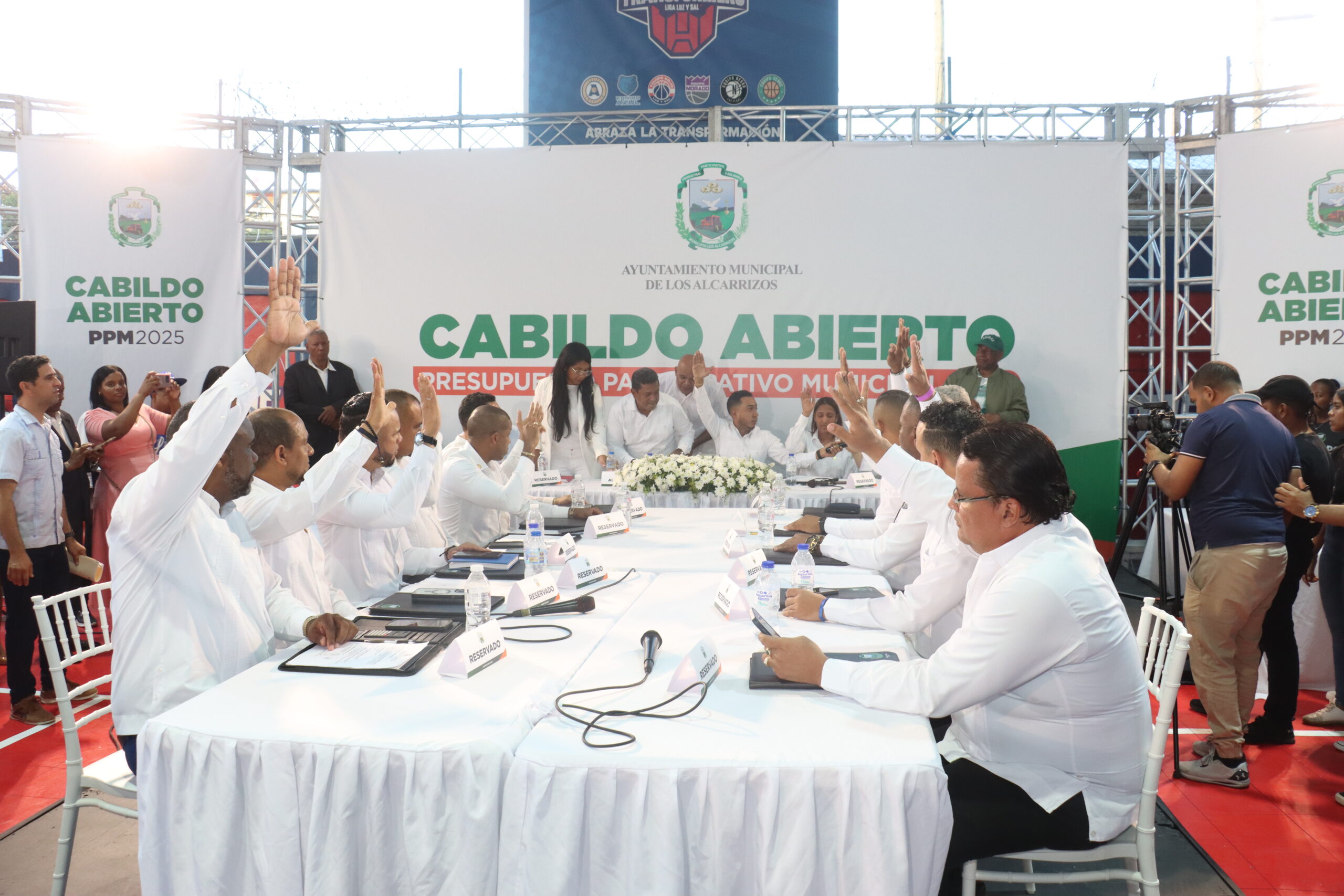 En el marco de un concurrido Cabildo abierto realizado este sábado 18 en la cancha multiusos de CONANI, el alcalde de Los Alcarrizos, Junior Santos, presentó y obtuvo la aprobación unánime del Concejo de Regidores para una moción que incluye un aporte especial del presidente Luis Abinader por un monto de 100 millones de pesos. Este aporte se sumará a los 30 millones de pesos del presupuesto participativo municipal, destinados a la construcción de 52 puentes y otras obras prioritarias solicitadas por las comunidades a través de las juntas de vecinos.