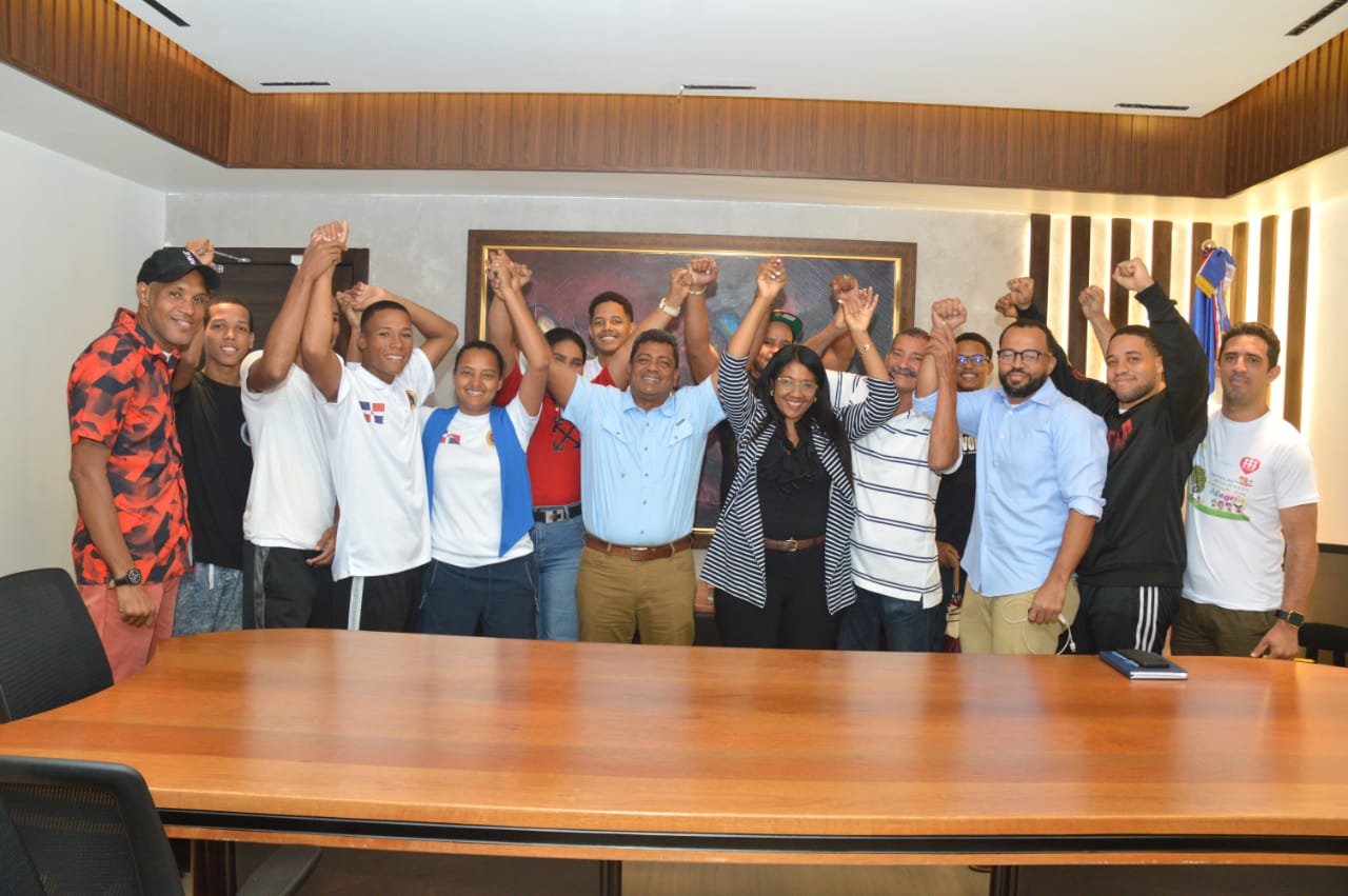 El alcalde Junior Santos, junto a la vicealcaldesa Felicia Santos, se reunieron con varios jóvenes deportistas de Taekwondo que este mes viajarán a un torneo en Puerto Rico, representando al país.