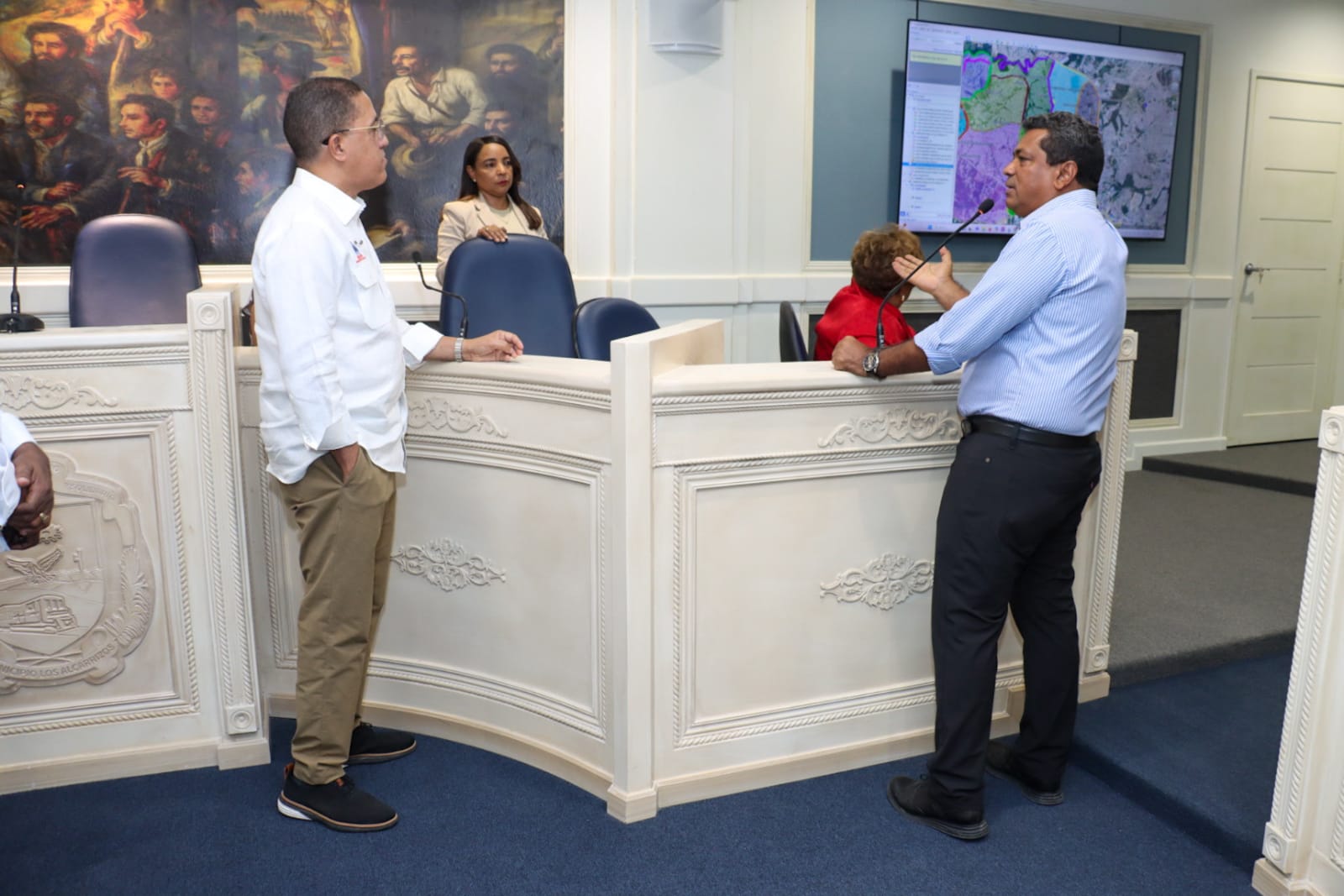 El encuentro fue encabezado por Roberto Herrera, director de Infraestructuras del Ministerio de Educación, y el alcalde Junior Santos, quienes sostuvieron los primeros contactos con los ingenieros y empresas contratistas mediante diálogos interactivos destinados a evaluar y recopilar información detallada sobre los centros escolares que serán intervenidos.
